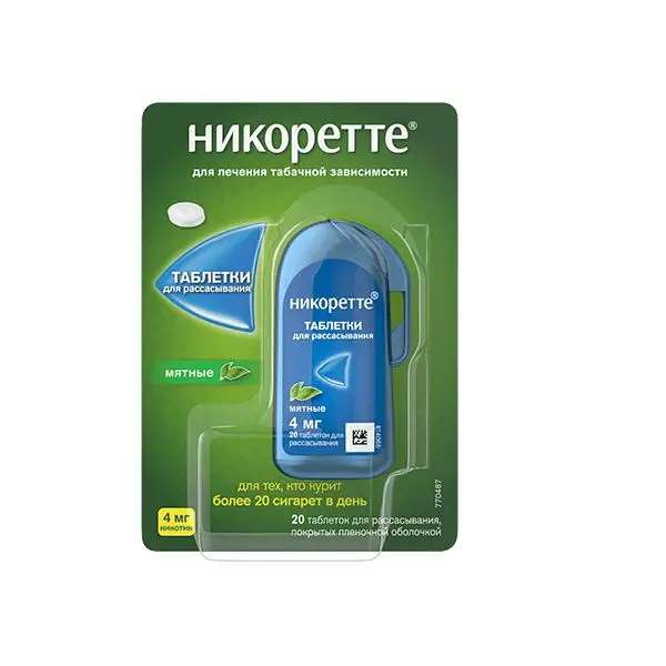 Никоретте таб д/расс. п/о 4мг №20 мятные ^